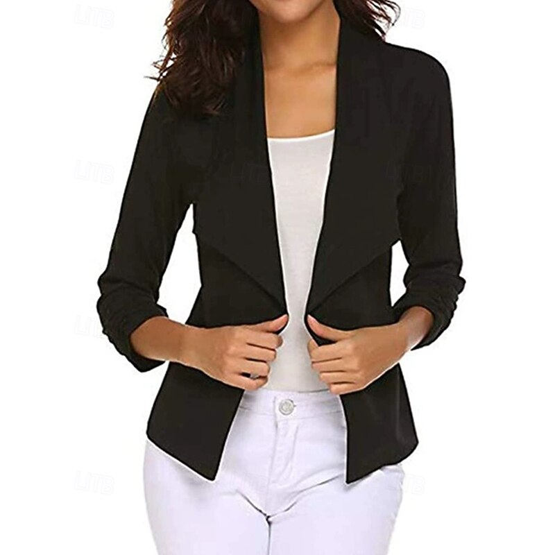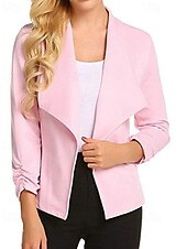 More information about Women's Blazer Comfortable Patchwork Elegant Fashion Outdoor Plain Going out Casual Daily Weekend Cardigan Regular Lapel Regular Fit Long Sleeve Outerwear Black White Pink Spring Fall