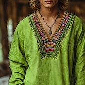 More information about Men's Shirt Linen Shirt Viking Style Popover Shirt Summer Shirt Beach Wear Ethnic Vacation Casual Green Long Sleeve V Neck Summer Spring Clothing Apparel