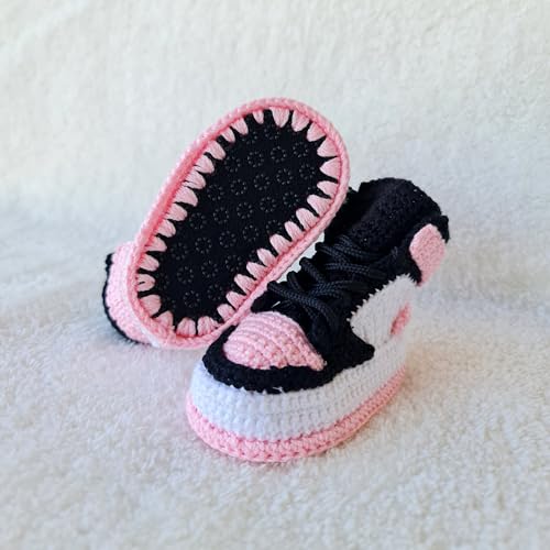 HOT ! Pink Crochet Baby Sneaker Booties, Retro Basketball Newborn Socks, Customizable Knit Shoes, Baby Shower Gift, Slip-on Shoes Infants