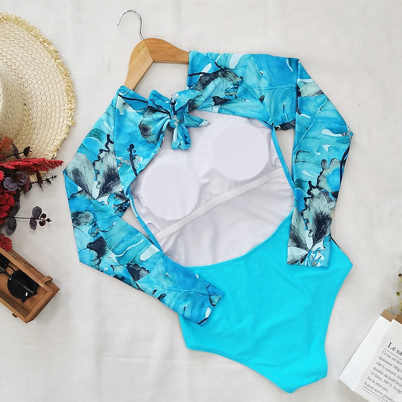 More information about Women's Rash Guard One Piece Swimsuit UV Sun Protection UPF50+ Breathable Long Sleeve Bodysuit Bathing Suit Knotted Swimming Surfing Beach Water Sports Floral Autumn / Fall Spring Summer / Stretchy