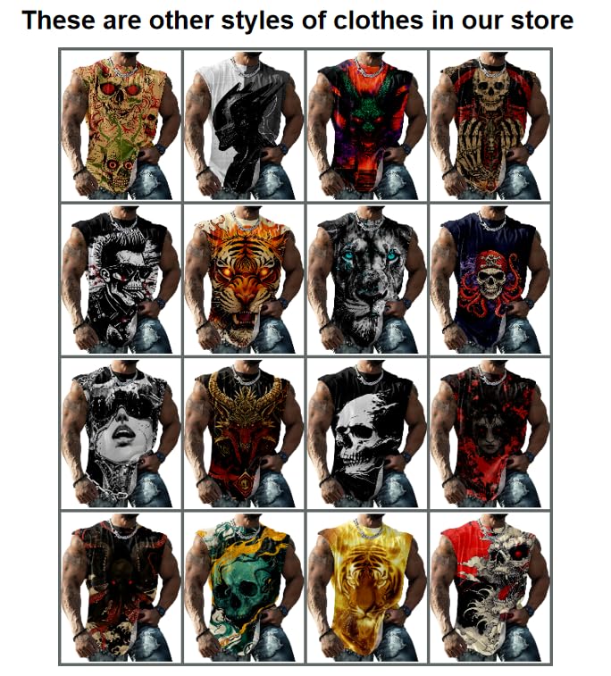 More information about MARSVOVO Graphic Tees Men Street Skull 3D Print Sleeveless Crewneck Oversized Shirt Muscle Quick Dry Tank Tops