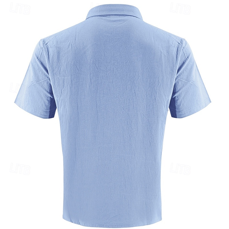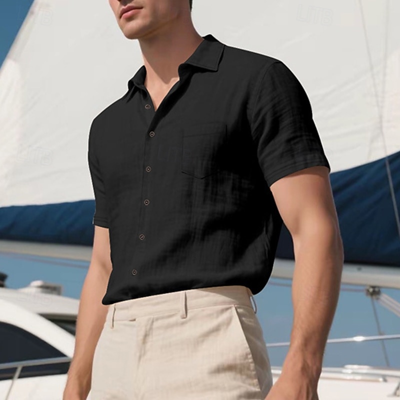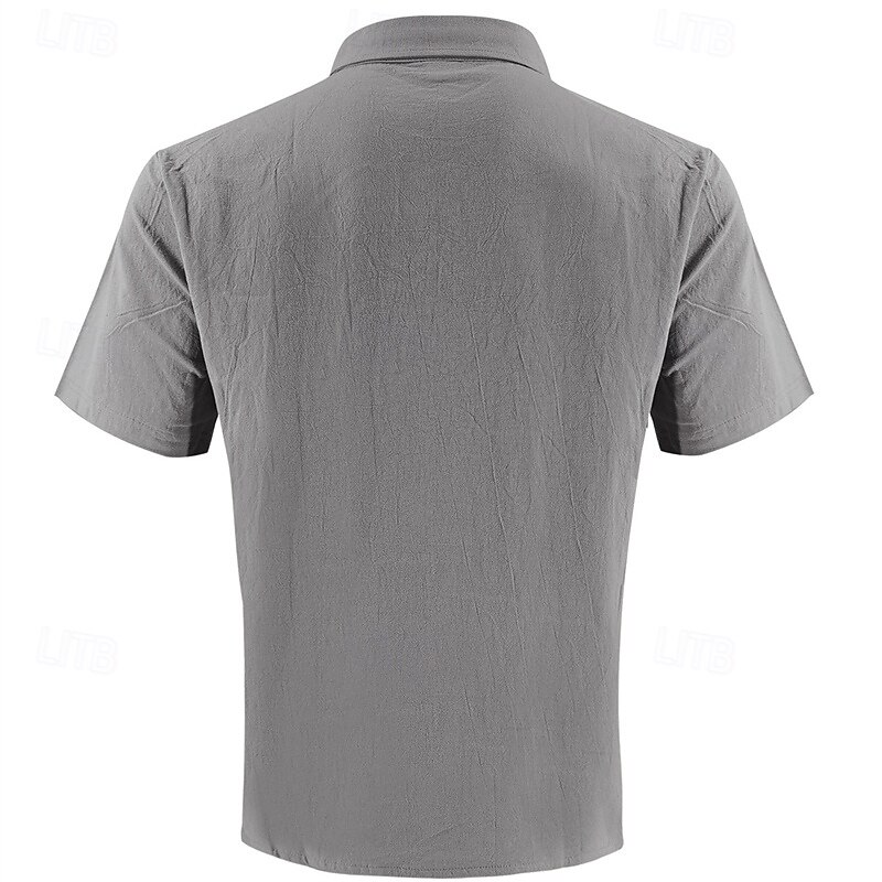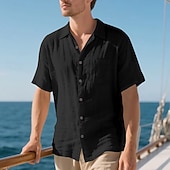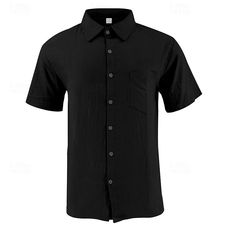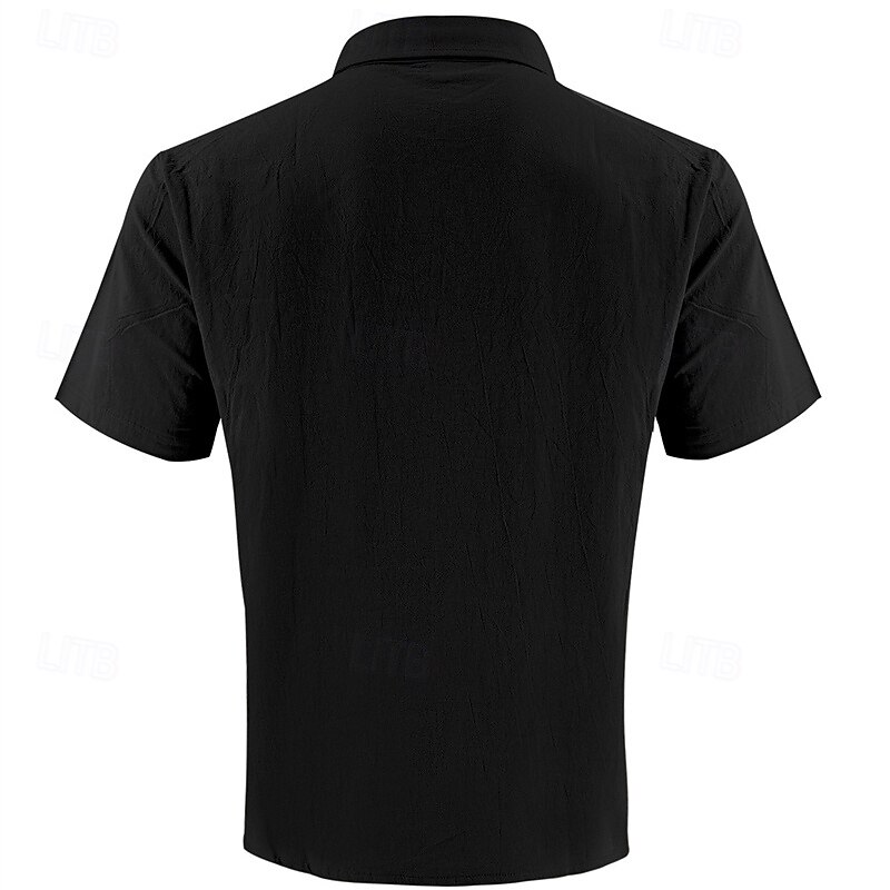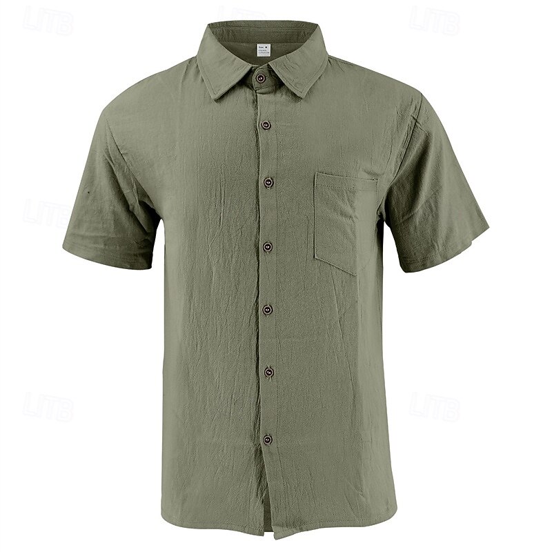 More information about Men's Shirt Linen Shirt Casual Shirt Button Up Shirt Cotton Shirt Plain Vacation Street Black White Khaki Army Green Short Sleeve Turndown Summer Clothing Apparel Front Pocket