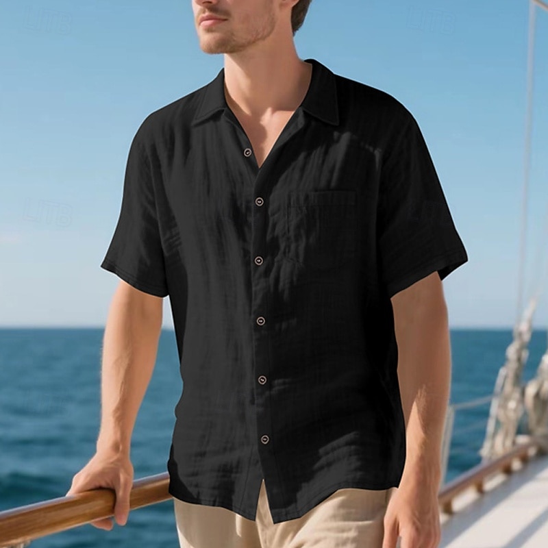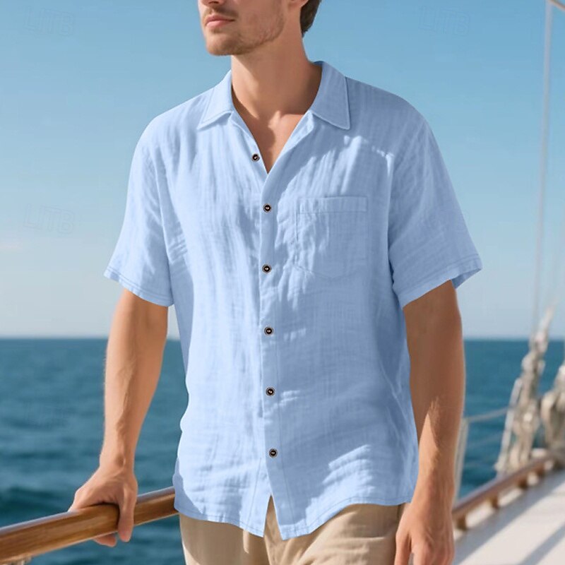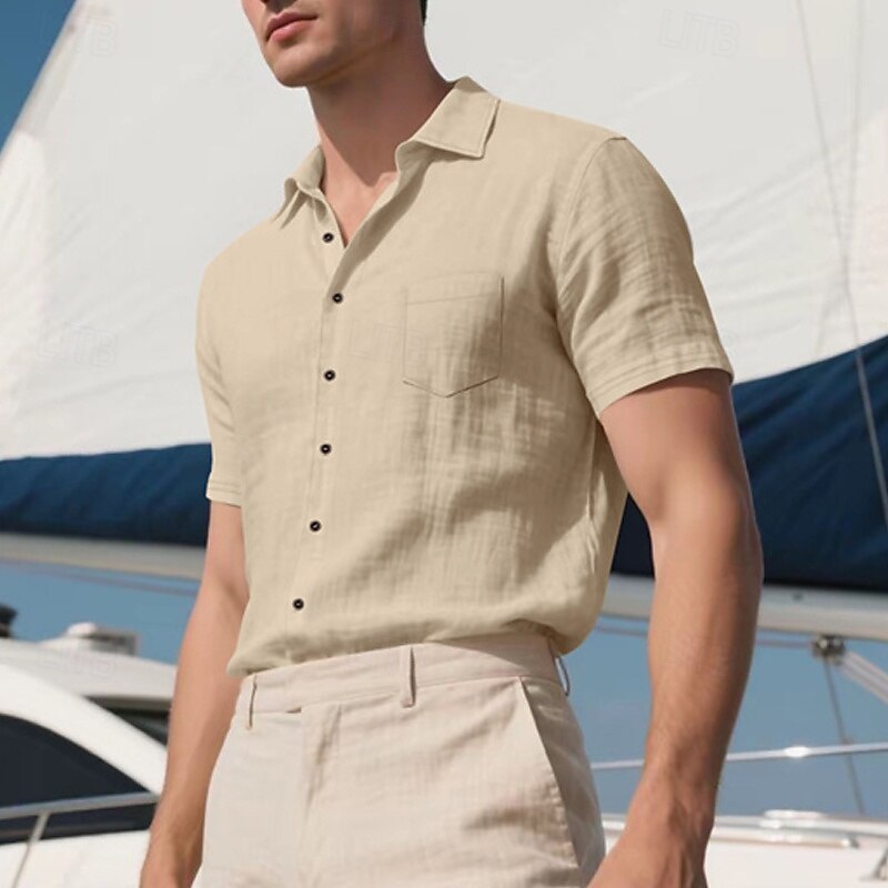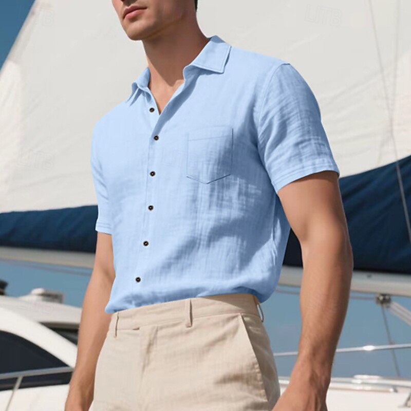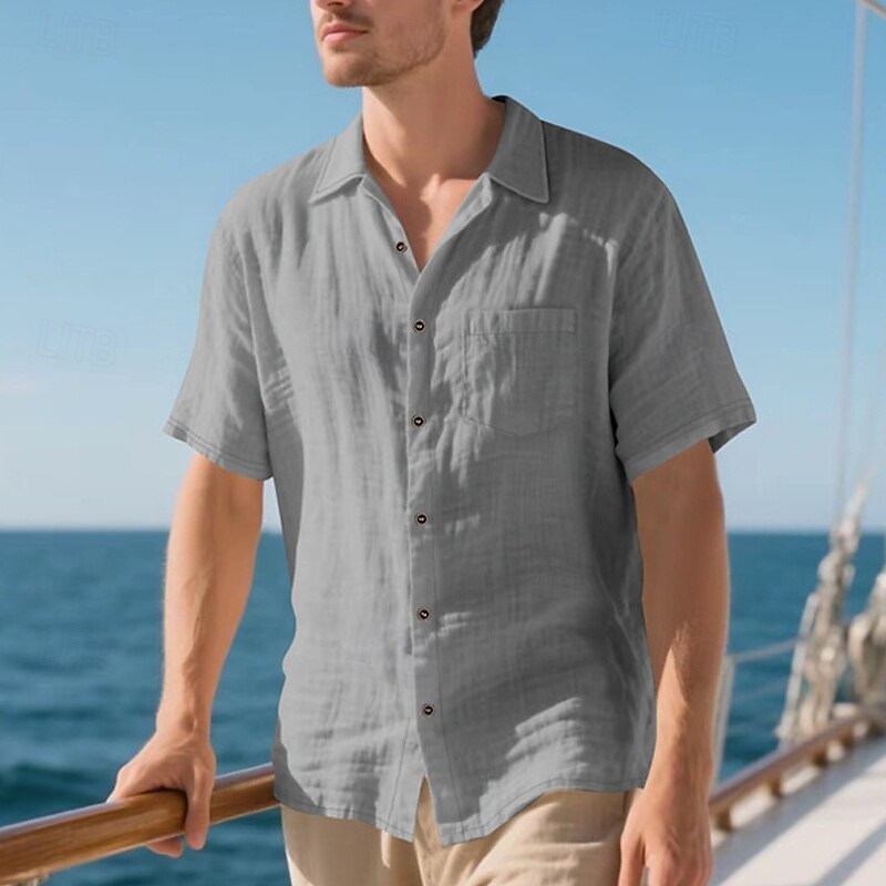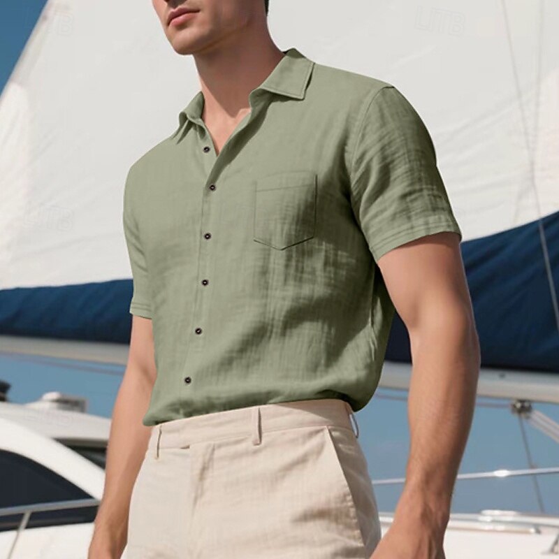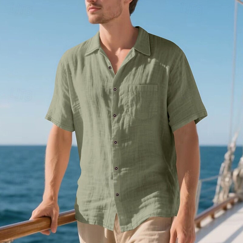 Highlights - Stay cool and stylish all summer long in our Men's Linen Shirt - Perfect for a casual beach vacation - Short sleeves for ultimate comfort in hot weather - Turndown neckline adds a touch of sophistication - Made from high-quality, breathable linen fabric - A must-have item for your summer wardrobe
