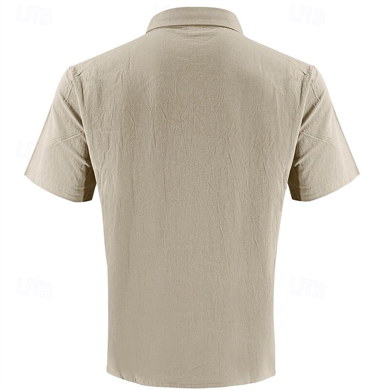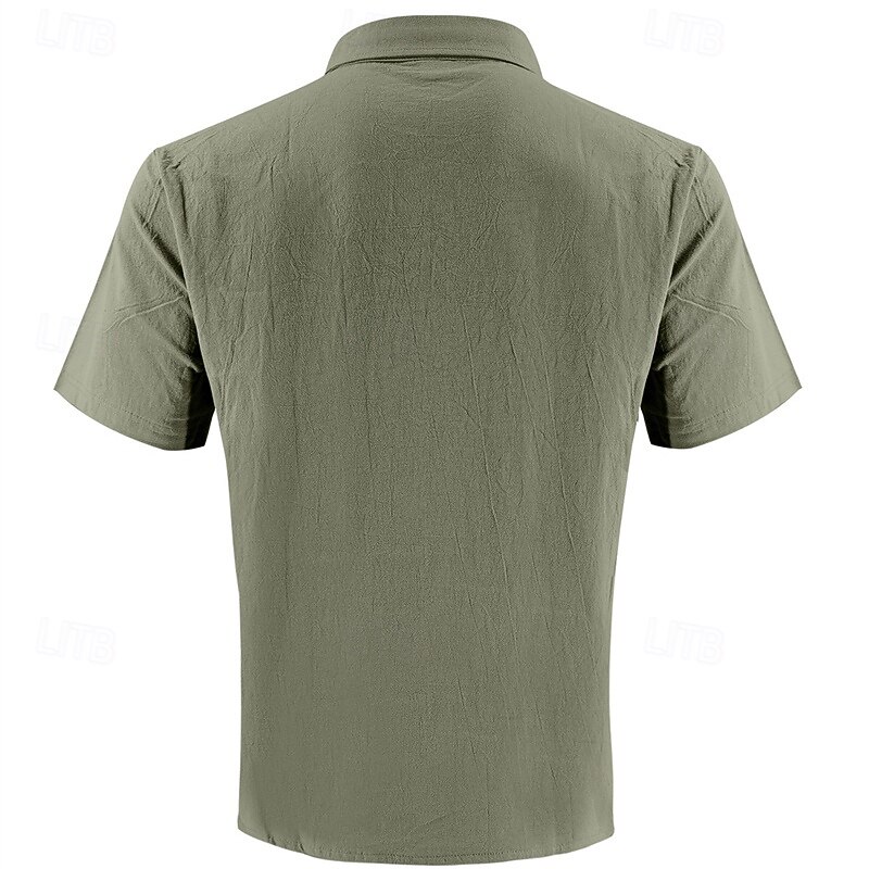 Men's Shirt Linen Shirt Casual Shirt Button Up Shirt Cotton Shirt Plain Vacation Street Black White Khaki Army Green Short Sleeve Turndown Summer Clothing Apparel Front Pocket 8