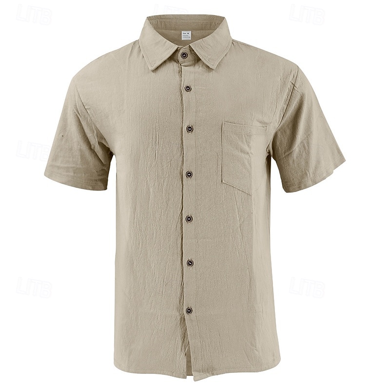 HOT ! Men's Shirt Linen Shirt Casual Shirt Button Up Shirt Cotton Shirt Plain Vacation Street Black White Khaki Army Green Short Sleeve Turndown Summer Clothing Apparel Front Pocket