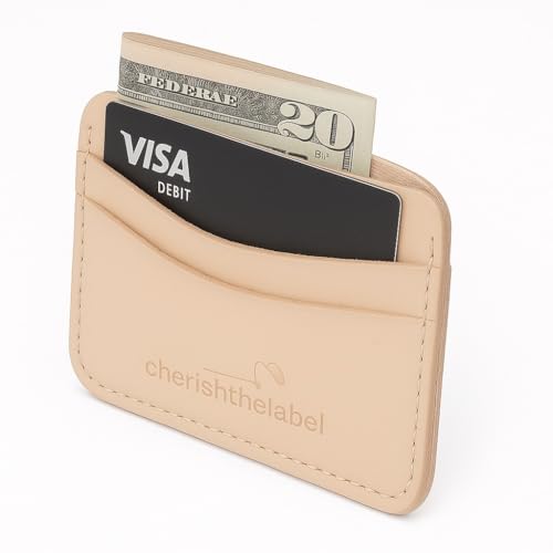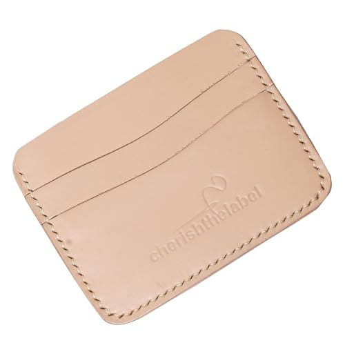 Minimalist Leather Card Holder, Slim Front Pocket Wallet, Hand-Stitched Full Grain Vegetable Tanned Leather For Men & Women (BEIGE HAND STICH, BEIGE) 5