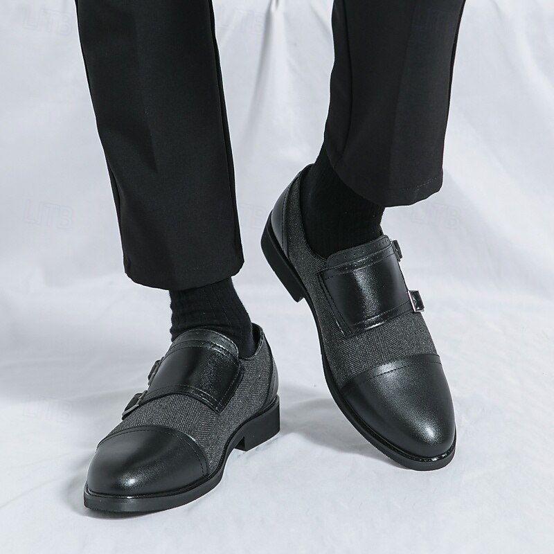 More information about Men's Double Monk Strap Shoes - Faux Leather and Herringbone Fabric, Classic Formal Dress Shoes for Business and Weddings