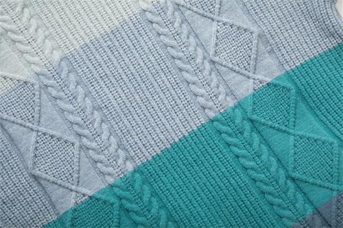 Basic Casual Knitted Long Sleeve Pullover Sweater Blocking Dough Youth Basic Casual Knitted Long (Light Blue, XXL) 5