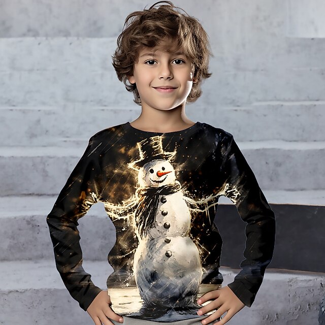 More information about Boys 3D Snowman Christmas T shirt Tee Shirts Long Sleeve 3D Print Fall Winter Sports Fashion Streetwear Kids 3-12 Years Crew Neck Outdoor Casual Daily Regular Fit