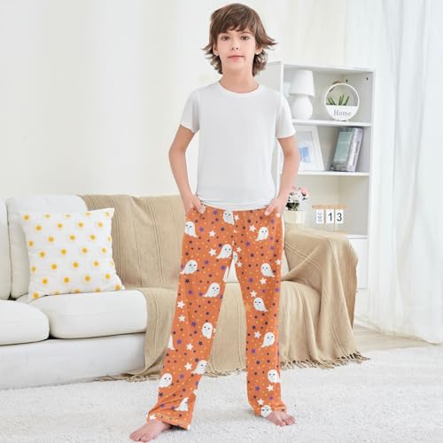 Boy's Lounge Pants Cartoon Ghost Colorful Star Orange Kids Jogger Pants Elastic Waist Long Bottoms with Pockets 6-14 4