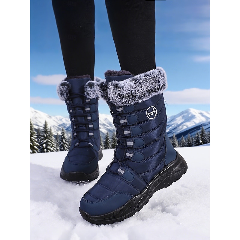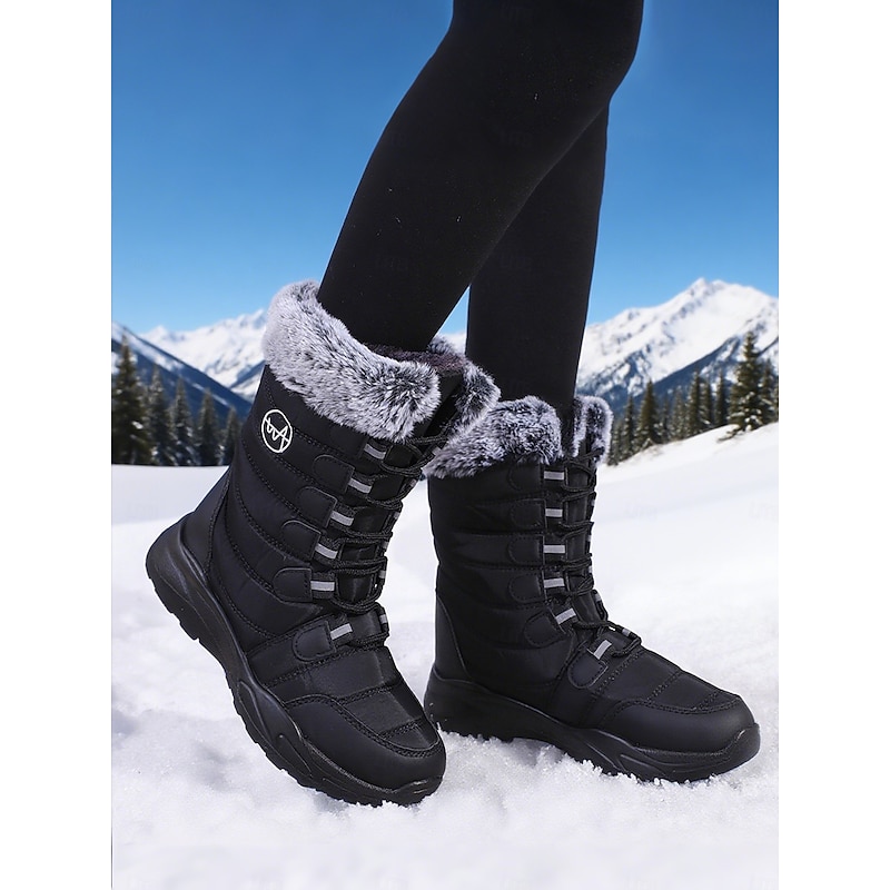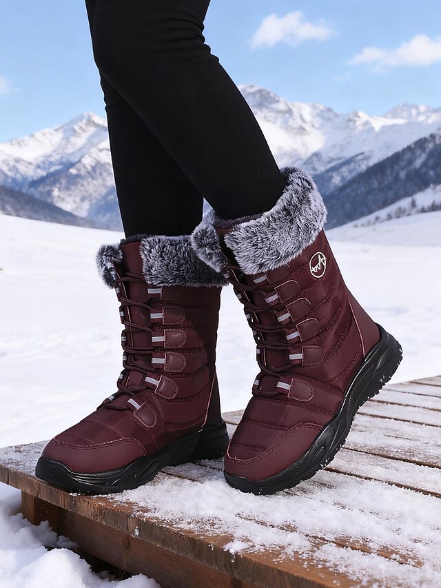 HOT ! Women's Burgundy Mid-Calf Winter Snow Boots with Faux Fur Trim, Waterproof Insulated Outdoor Boots for Hiking, Skiing & Cold Weather
