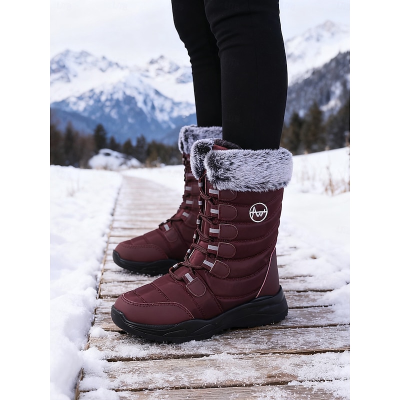 Women's Burgundy Mid-Calf Winter Snow Boots with Faux Fur Trim, Waterproof Insulated Outdoor Boots for Hiking, Skiing & Cold Weather 5
