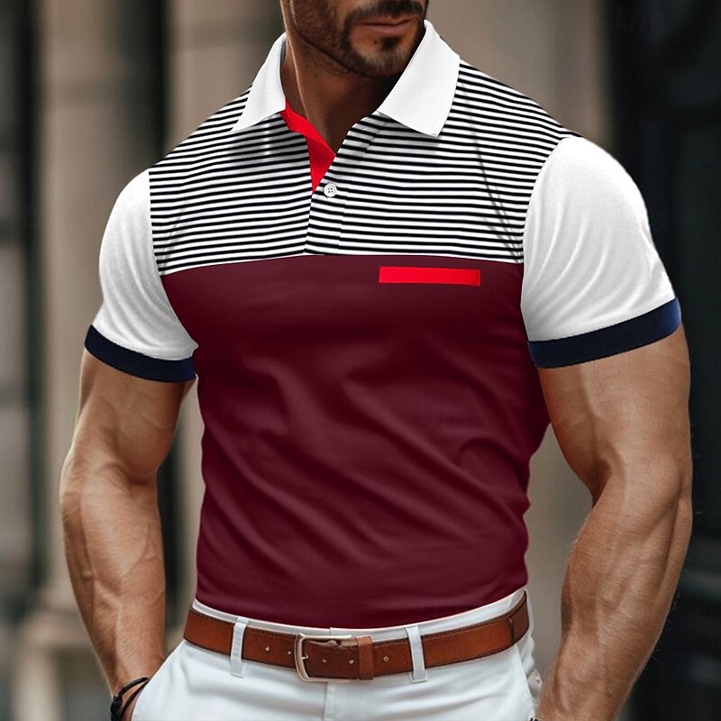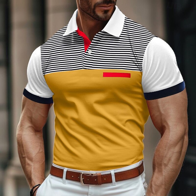 More information about Men's Polo Shirt Golf Shirt Casual Holiday Ribbed Polo Collar Short Sleeve Fashion Basic Color Block Stripes Classic Summer Regular Fit White Yellow Burgundy Navy Blue Sky Blue Polo Shirt