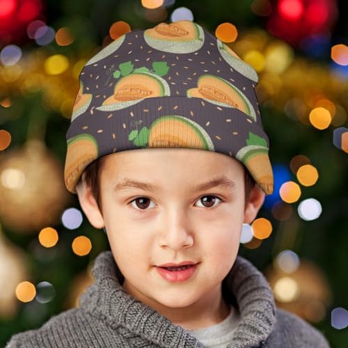 Cartoon Cantaloupe Fruit Pattern Kids Beanie Hat for for Girls Boys Children Cap Winter Knitted Chemo Cancer Headwear Accessories Gifts Decoration Black 7