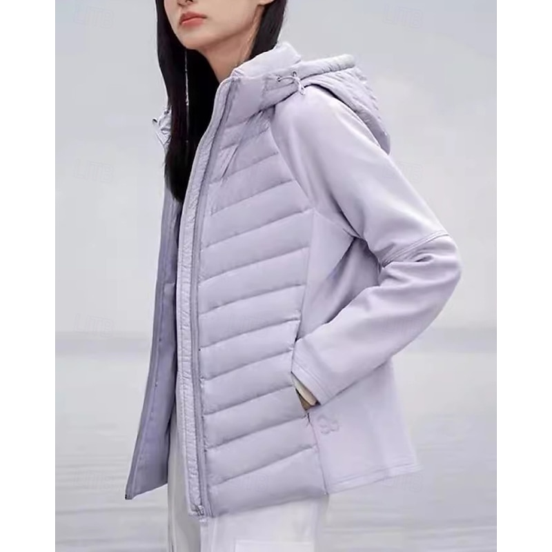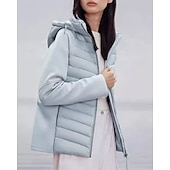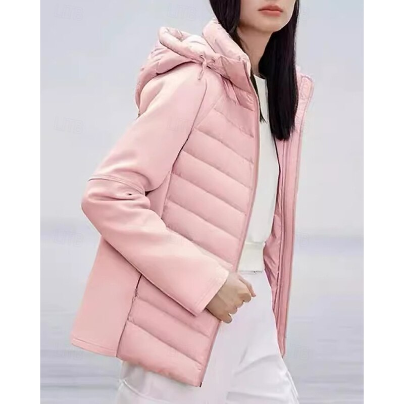 More information about Women's Puffer Jacket outdoor coat Full Zip Hooded Long Sleeve Top Athleisure Solid Colored Windproof Lightweight Warm Athletic Sports Track Sportswear Activewear Black White Pink