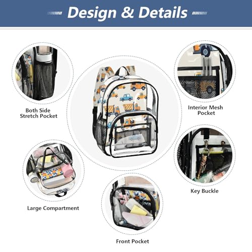 More information about Clear Backpack for School Blue Yellow Car Truck Pattern Transparent Bookbag for Girls See Through PVC Boy Backpacks