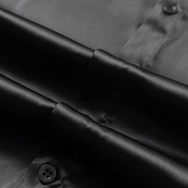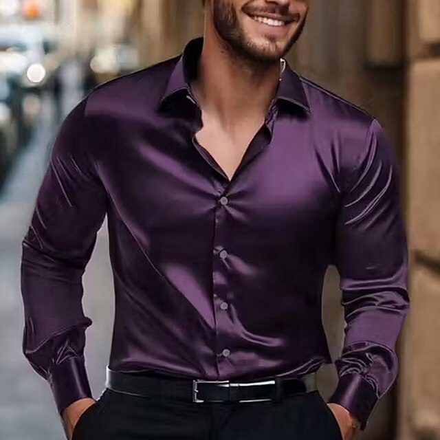 More information about Men's Shirt Satin Shirt Dress Shirt Casual Shirt Button Up Shirt Plain Formal Wedding Black Blue Dark Purple Long Sleeve Lapel Spring & Fall All Seasons Clothing Apparel