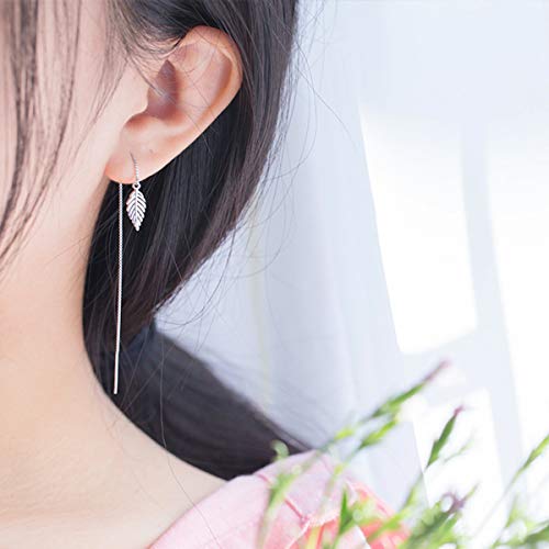 SLUYNZ Solid 925 Sterling Silver Leaf Dangle Earrings Chain for Women Leaf Drop Earrings Threader Tassel 6