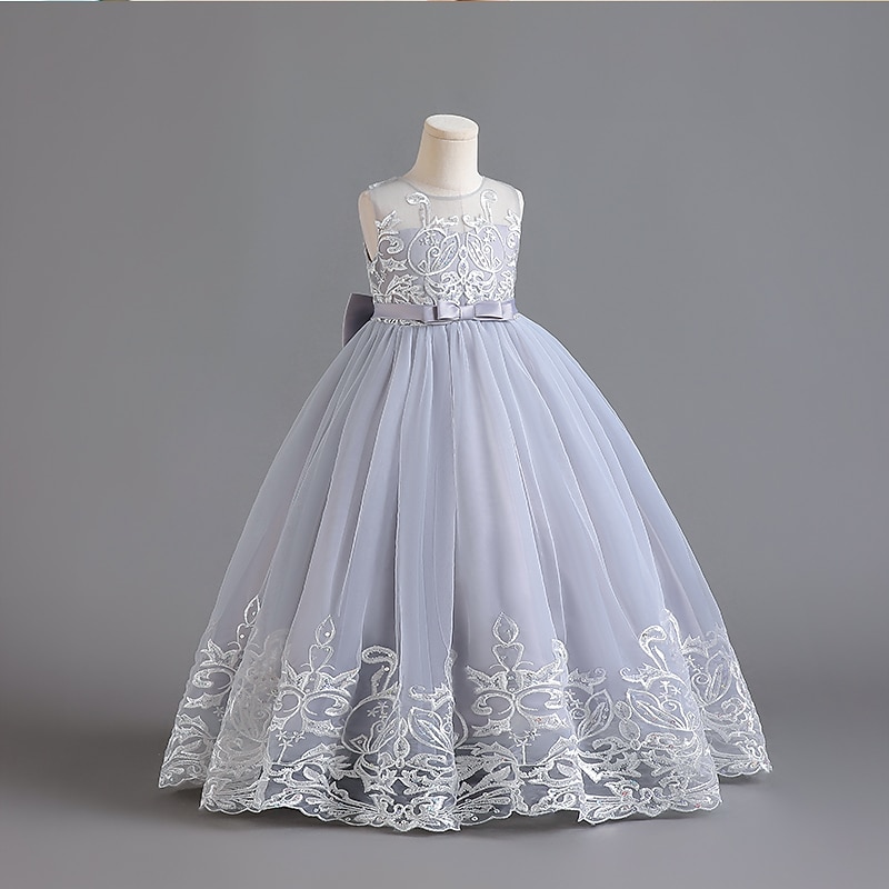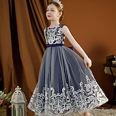 HOT ! Kids Girls' Dress Flower Sleeveless Wedding Christening dress Princess Polyester Floral Embroidery Dress Flower Girl's Dress Summer 4-13 Years Deep Purple Watermelon Red Bean Paste