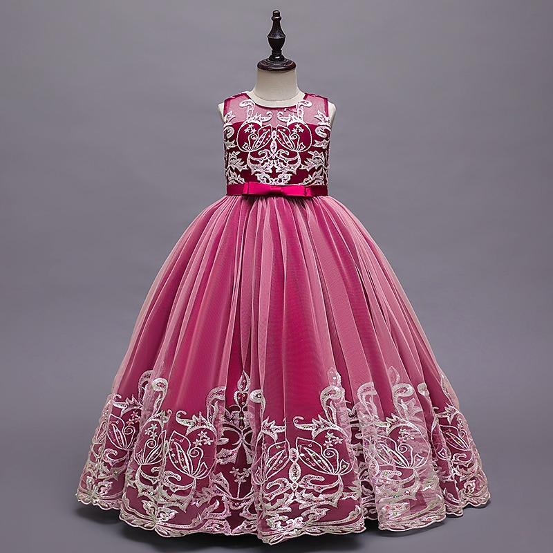 More information about Kids Girls' Dress Flower Sleeveless Wedding Christening dress Princess Polyester Floral Embroidery Dress Flower Girl's Dress Summer 4-13 Years Deep Purple Watermelon Red Bean Paste