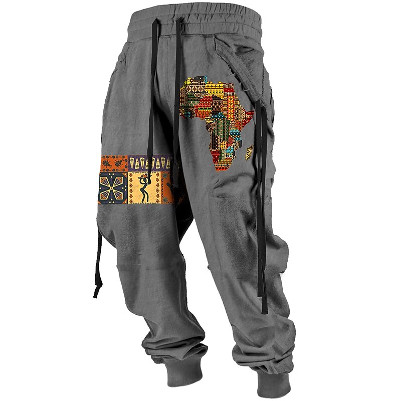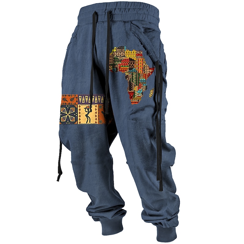 More information about Independence Day Mens Graphic Pants Tribal Bandana Print Vintage 3D Sweatpants Trousers Outdoor Street Casual Daily Polyester Black Red Blue Mid Waist Elasticity Vavavava Harem Brown Cotton Africa