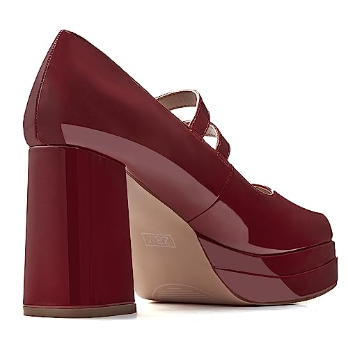 Coutgo Women's Platform Mary Jane Pumps Two Strap Square Toe Chunky Block Heel Sandals Party Shoes 4