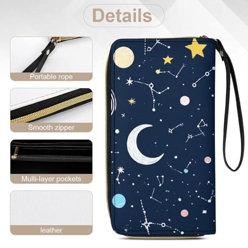 More information about PU Leather Wallet for Women, Travel Credit Card Holder Space Galaxy Constellation Zodiac Starry Night Stars Zipper Long Purse Waterproof Wallet with Wrist strap