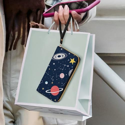 HOT ! PU Leather Wallet for Women, Travel Credit Card Holder Space Galaxy Constellation Zodiac Starry Night Stars Zipper Long Purse Waterproof Wallet with Wrist strap