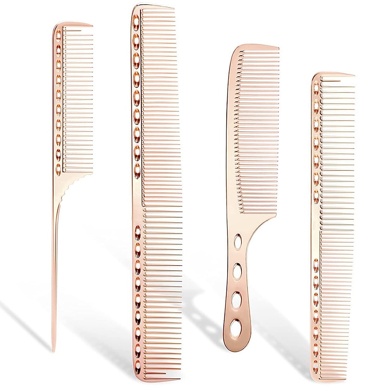 4pcs Professional Stainless Steel Comb Space Aluminum Comb For All Hair Types Hair Styling Comb Fine Cutting Comb Rat Tail Comb Detangling Comb 9