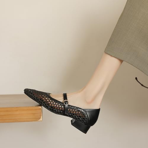 Cozivwaiy Mary Jane Shoes Women Mesh Ballet Flats Square Toe Buckle Strap Fishnet Ballerina Flat Shoes 6