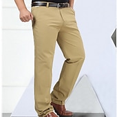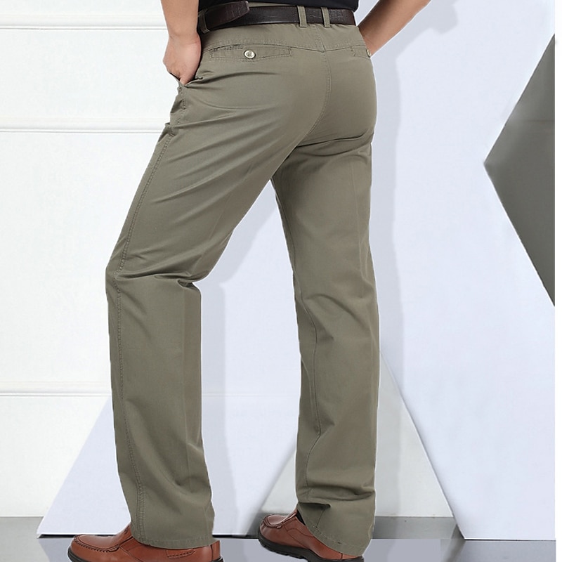 More information about Men's Dress Pants Trousers Casual Pants Pocket Straight Leg Plain Comfort Breathable Full Length Wedding Casual Daily 100% Cotton Stylish Chic & Modern ArmyGreen Black High Waist Inelastic