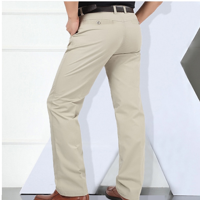 HOT ! Men's Dress Pants Trousers Casual Pants Pocket Straight Leg Plain Comfort Breathable Full Length Wedding Casual Daily 100% Cotton Stylish Chic & Modern ArmyGreen Black High Waist Inelastic