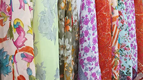 Mango Gifts Indian Silk Sari Square Scarf, Soft Floral Printed Scarves, Lightweight and Breathable, Multipurpose Perfect for Headbands Set of 10 Pieces Mix Colurs and Style 20" x 20" Inches 3