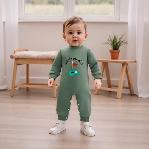 Newborn Baby Boy Fall Outfit Romper Golf Court Embroidery Long Sleeve Onesie Jumpsuit Bodysuit Cute Infant Clothes 6