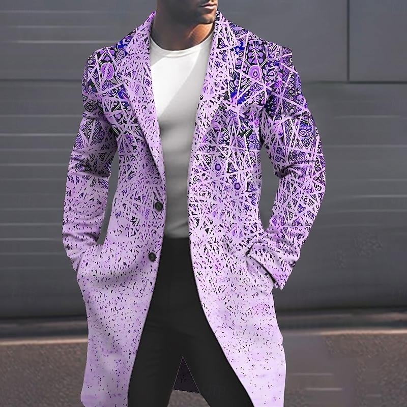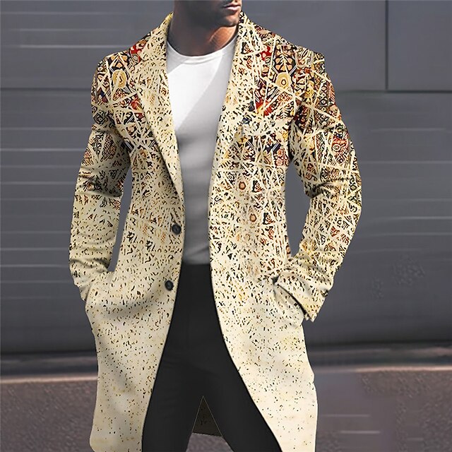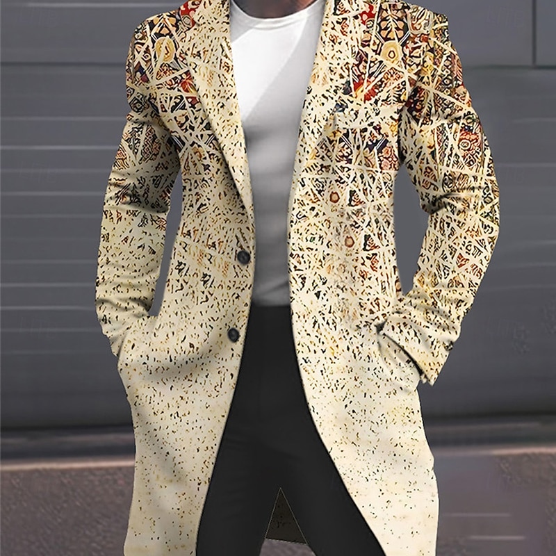 More information about Men's Geometry Winter Coat Overcoat Coat Warm Comfortable Breathable Fashion Streetwear Business Work Wear to work Going out Pocket Print Fall & Winter Turndown Long Sleeve Yellow Pink Blue