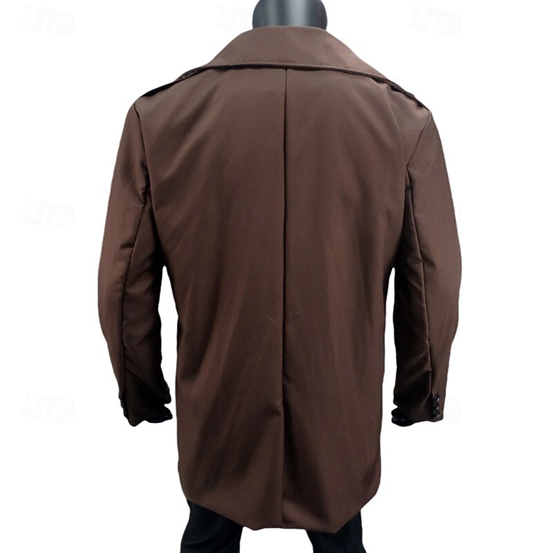 Men's Peacoat Trench Coat Vacation Daily Fall Winter Polyester Windproof Warm Outerwear Clothing Apparel Fashion Classic Plain Pocket Lapel Double Breasted 4