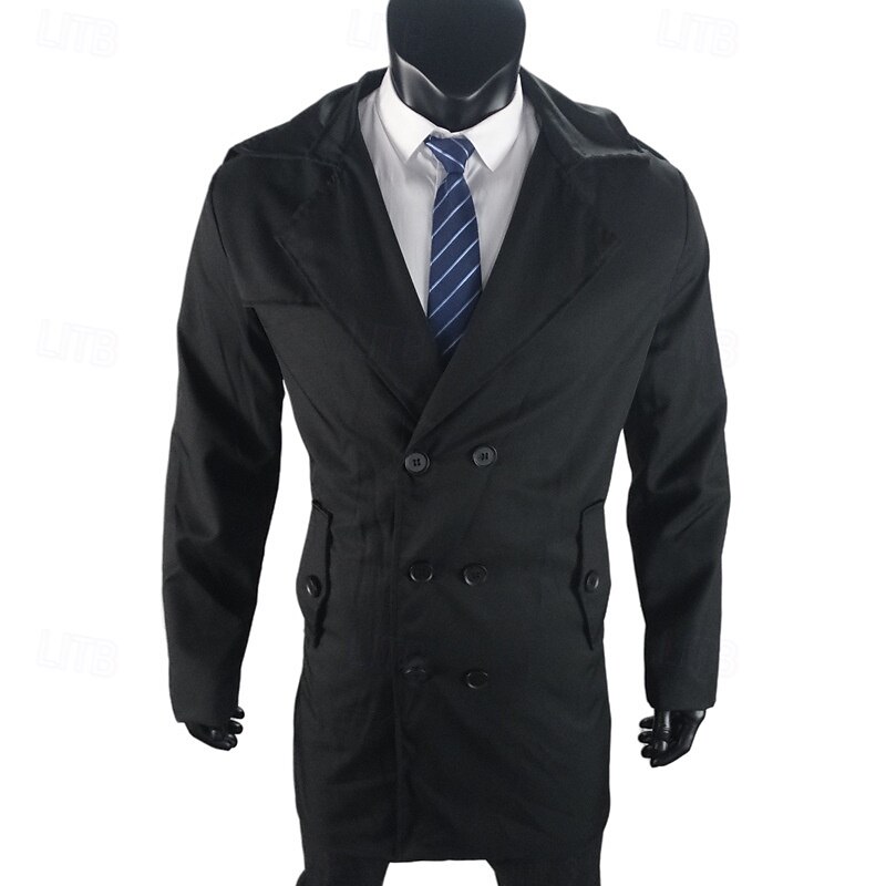 More information about Men's Peacoat Trench Coat Vacation Daily Fall Winter Polyester Windproof Warm Outerwear Clothing Apparel Fashion Classic Plain Pocket Lapel Double Breasted