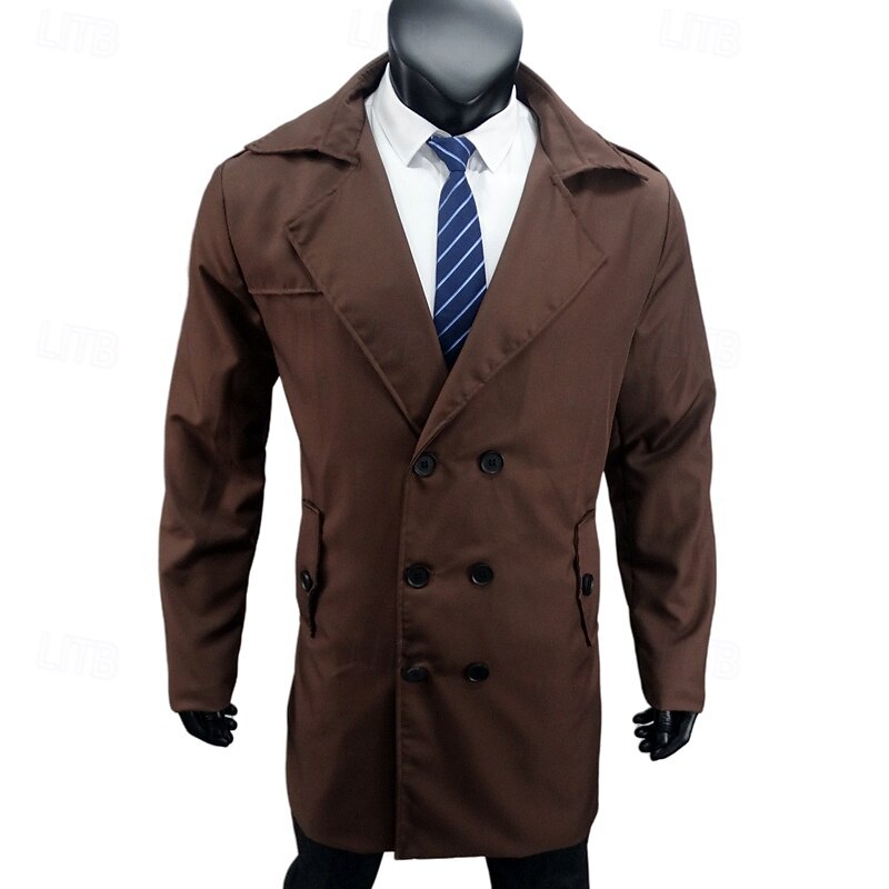 Men's Peacoat Trench Coat Vacation Daily Fall Winter Polyester Windproof Warm Outerwear Clothing Apparel Fashion Classic Plain Pocket Lapel Double Breasted 10