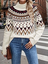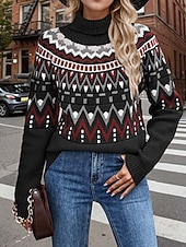 More information about Women's Faire Isle Sweater Turtleneck Knit Knitted Fall Winter Weekend Vintage Fashion Streetwear Long Sleeve Geometric Black White