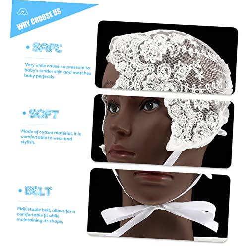 Toyvian Adorable Lace Cotton Hat with Adjustable Belt Breathable Floral Bonnet for Soft White Cotton Cap for Spring Summer Photo Props Comfortable Fit 3