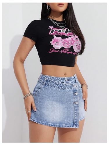 MakeMeChic Women's Wrap Denim Skirts Button Front Asymmetrical Hem Short Jean Skirt 6