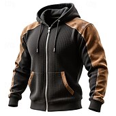 More information about Men's Hoodie Full Zip Hoodie Waffle Hoodies Black Hooded Plain Patchwork Color Block Sports & Outdoor Casual Daily Streetwear Cool Sportswear Winter Spring & Fall Clothing Apparel Hoodies