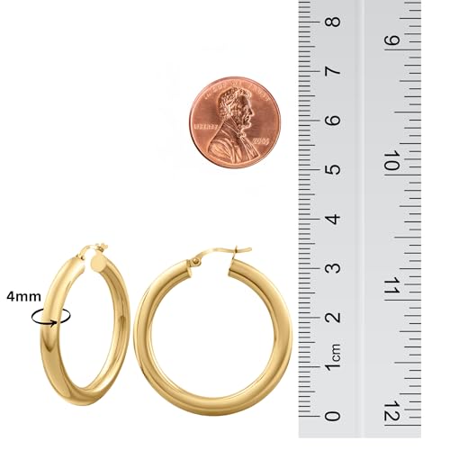 More information about 10k Solid Hoop Earrings, Classic Tube Hoops, Chunky Real Gold Hoops
