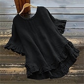 More information about Women's Shirt Cotton Linen Shirts Button Up Blouse Plain Fashion Round Neck Street Daily Ruffle Black White Yellow Blue Summer