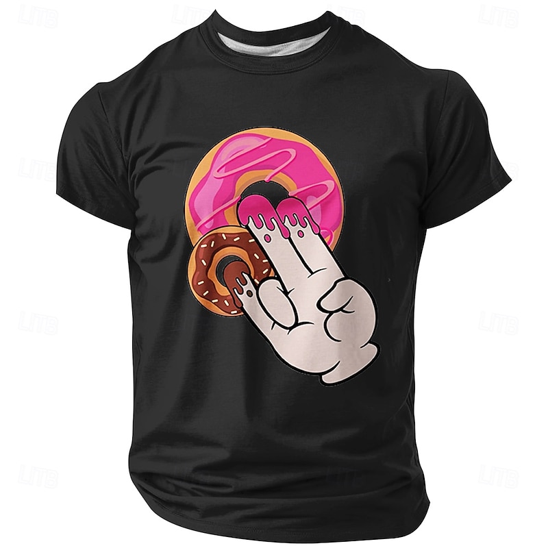 HOT ! Men's Funny Glazed Donut Fingers Graphic T-Shirt - Humorous Innuendo Pun Design