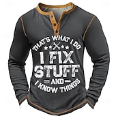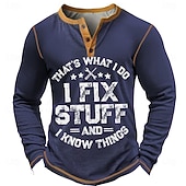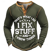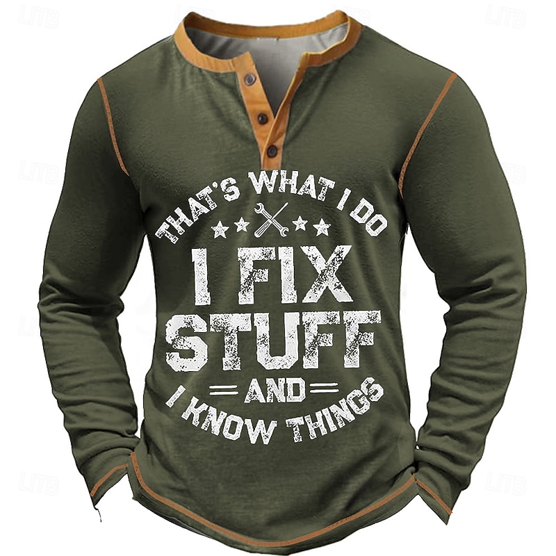 More information about Men's Graphic Letter I FIX STUFF Henley Shirt Tee Long Sleeve Vintage Fashion Designer Outdoor Casual Daily Spring & Fall Army Green Dark Gray Navy Blue Dark Blue Henley Henley T-Shirt