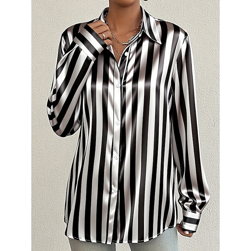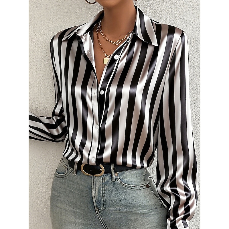 More information about Women's Shirt Dressy Tops Formal Work Shirt Graphic Striped Elegant Stylish Casual Long Sleeve Collar Regular Tops Work Daily Black Red Brown Spring Fall Winter