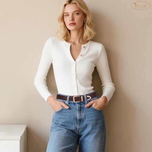 • Versatile Match and Occasion: The elegant design gold/silver buckle leather belt for women is nice match your jeans ,pants,dress,skirts,suits,coats, both for for your formal or casual wear in any season and all occasions. Great choice for everyday wear, office, travel, party, date and etc.