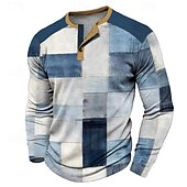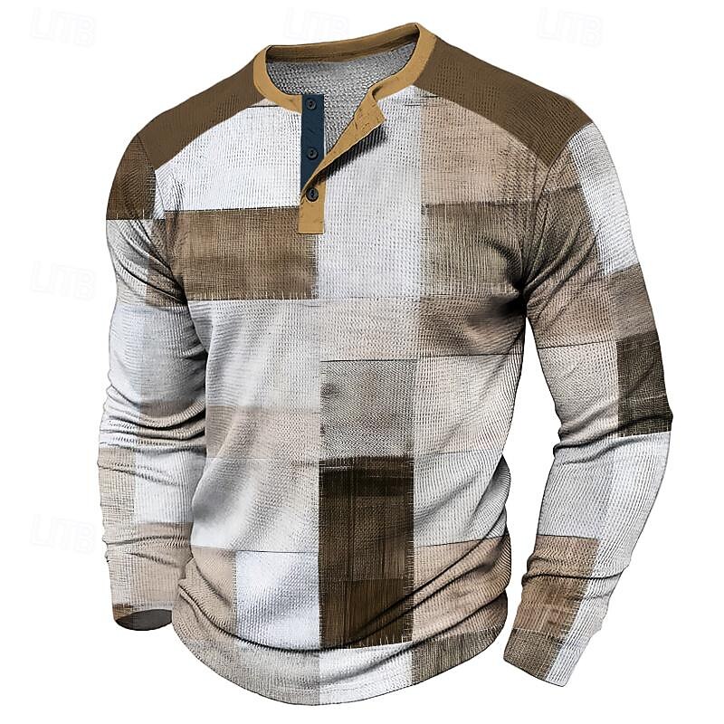 More information about Plaid Men's Fashion Casual 3D Printed Waffle Henley T Shirt Sports Outdoor Holiday Festival T shirt Blue Brown Dark Blue Long Sleeve Henley Shirt Spring & Fall Clothing