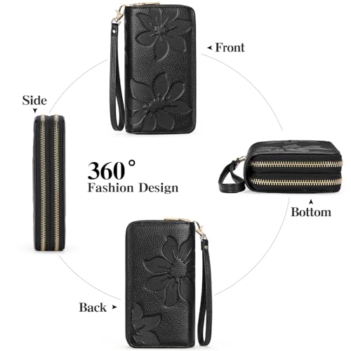 GOIACII Women's Wallet Large Capacity Double Zip Ladies Card Phone Holder RFID Blocking Wristlet Leather 3
